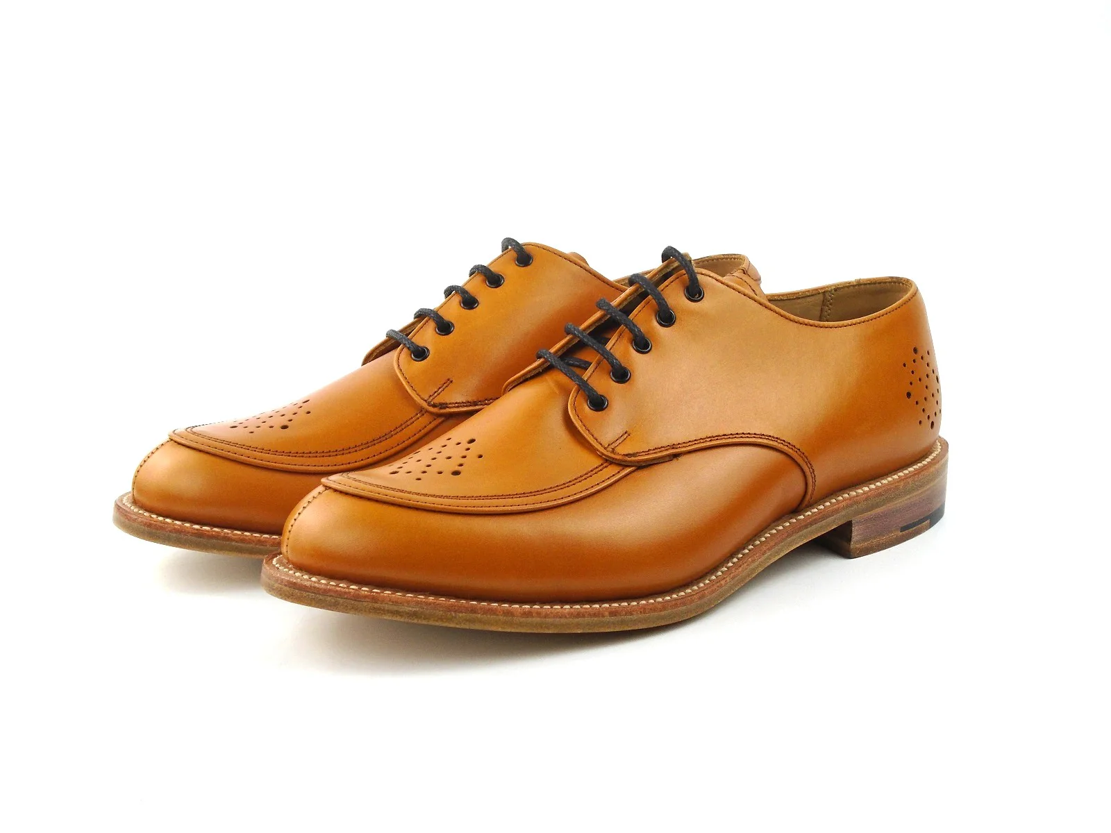 Men's Punch Detail Oxford City shoe in Acorn, finished on a Leather sole. Made on the 4444 last which does run large so we do advise on dropping at least half a UK size.